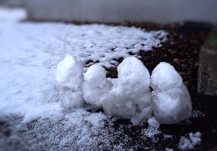PHOTO イエロースパッドの写真広場6〜雪だぁ… 2015年11月23日 yellowspad 雪が積もりました。本州はまだあったかいんじゃないですか?北海道はもう雪で遊べます。下の子が玄関先にミニ雪だるまを作っていました。 こどもたちは楽しそうですね。大人はこれから大変です。除雪とか。
